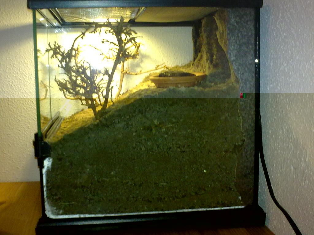 und vieeeeel platz zum buddeln.. meine hat damals bis zum boden gebuddelt und an der kompletten rückwand nen langen gang von rechts nach links durchgegraben.. die lieben das.. und ich konnnte sie super per taschenlampe beobachten und nach dem rechten schauen
