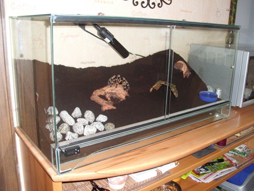Temperatur im terrarium mit lampe ca 24-26Grad.