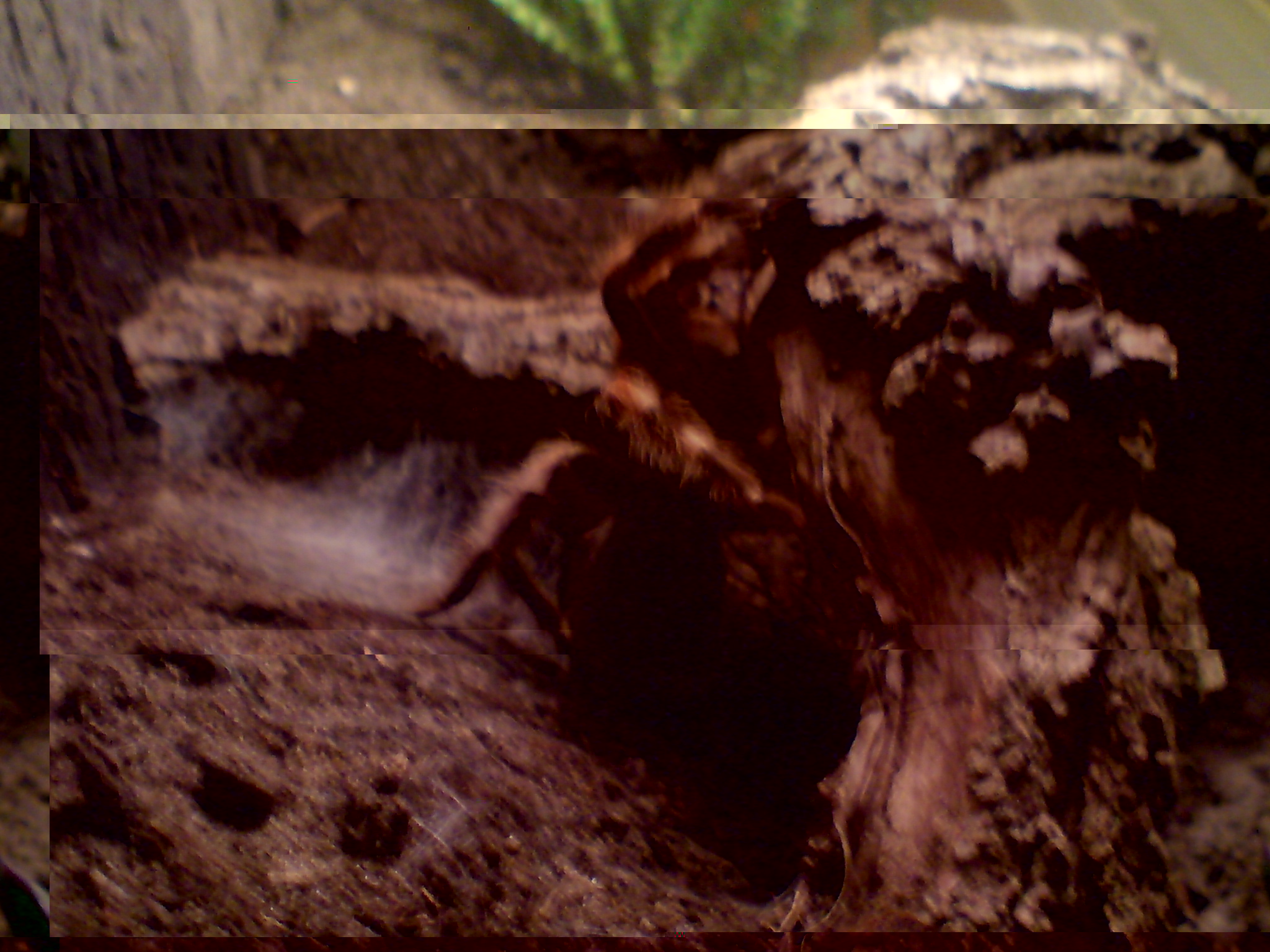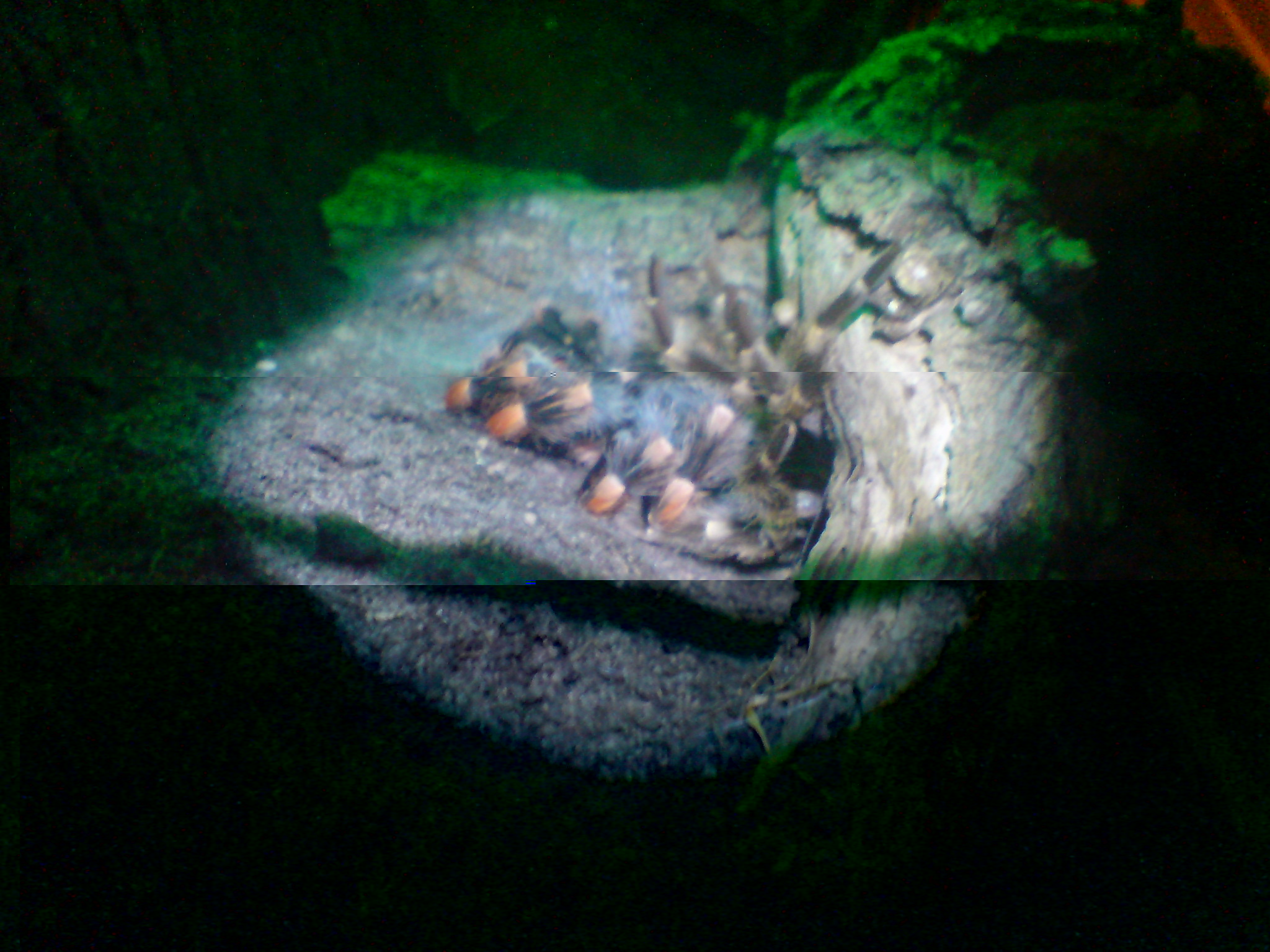 Hey leutz- meine B. smithi Zelda hat sich letzte nacht gehäuted, sie fing gestern um 18.00 uhr an eine hängematte zu spinnen, die sie im nachhinein gar nicht genutzt hat: sie hatte sich kurz vor dem häuten vertikal an einen ast gesetzt (erstes bild) und fing an sich vertikal zu häuten- als ich das sah, hatte ich riesige panik, weil ich gelesen hatte, das es fast der sichere tot bedeuten kann , wenn sich die VS nicht auf dem rücken häuted. somit saß ich bis 3 uhr morgens vorm terra und hab zelda die daumen gedrückt - hab gestern darfür sogar ne party abgesagt und bin lieber bei zelda geblieben... zum ende hin is sie zum glück auf den rücken umgekippt- sie hat alles gut überstanden, sieht sooo meeega schick aus und die beine sind knapp 1cm länger!!!!!!!! super geiles erlebnis!!!!!!!!!!!!!!!!!!!!!!