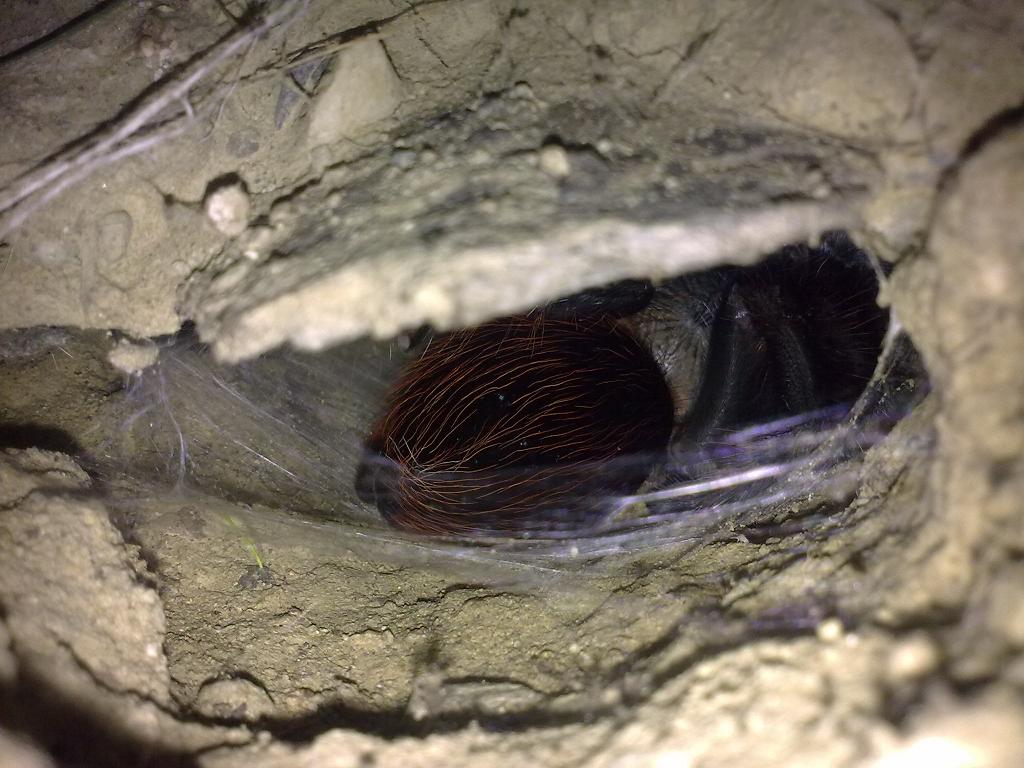 Da hat sich gestern jemand hübsch gemacht in ihrer Höhle. Die hab ich ursprünglich mal so angelegt, dass man von vorne gut einsehen kann, aber Frau Vagans hat mit ihrer Buddelei nen riesen Berg davor gebaut, dass ich die letzten Tage immer nur ein paar Tarsen gesehen hab. Aber daran kann man ja auch erkenne, ob sie steht oder liegt. Als ich dann ein Stück neue rote Haare gesehen hab, habe ich vorsichtig die Tür aufgemacht, um dieses Foto machen zu können. Leider hat sie dieses Mal ihre Exuvie nach hinten (in den Kleiderschrank?) gepackt. Bin mal gespannt, wann sie die freigibt und sich mal in ihrer ganzen neuen Pracht zeigt.