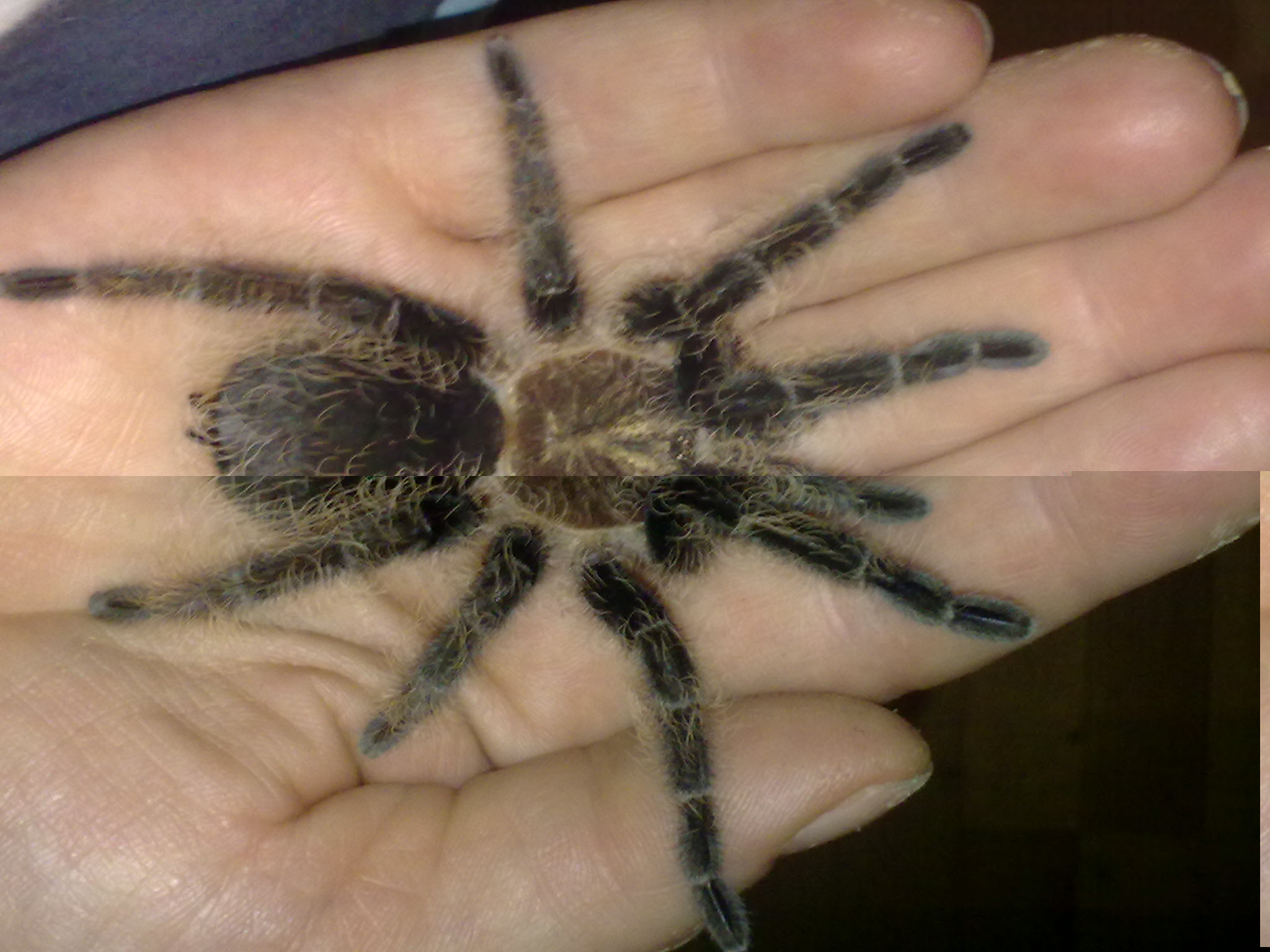 Jepp, hab gestern mal obligatorische Gesundheitskontrolle gemacht (geht nur bei den relaxteren Kanddaten, die anderen müssen dazu in die HD) und gemerkt, dass ihm irgendwie alles Rille war, was so passiert ist. Hab ihn schon aus dem Terra greifen können wie man nen Stein aufhebt. Da dachte ich mir mal so, probierste mal das, was eine von meinen anderen Spinnerekontakten auch ab und zu schafft: andere Hand von oben drübergelegt, kurz gewartet, "Sandwich" gewendet, kurz gewartet, und TADAAA !!!!, da lag das Bengelchen ganz ruhig auf dem Rücken für einige Minuten. Irgendwann hat er sich dann ganz langsam wieder umgedreht. Nach nem kurzen Popokrauler hab ich ihn n sein Terra zurück.