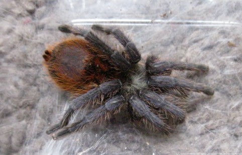 Eine Chromatopelma cyaneopubescens,DNZ 01/2010 und ca.3,5 cm groß und ein Mädel.