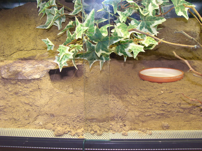 . Der erstaunliche ist, normalerweise graben die horizontale Wohnröhren. Meine hat aber vertikal gegraben. Die hat einfach bis hinten durch an die Scheibe gebuddelt und ist dann nach oben ins obere Versteck durchgebrochen. Nun haben Wohnröhre und das Versteck über der Wohnröhre eine direkte Verbindung. Nu hab ich 2 Eingänge. Interesannte Beobachtung wieder