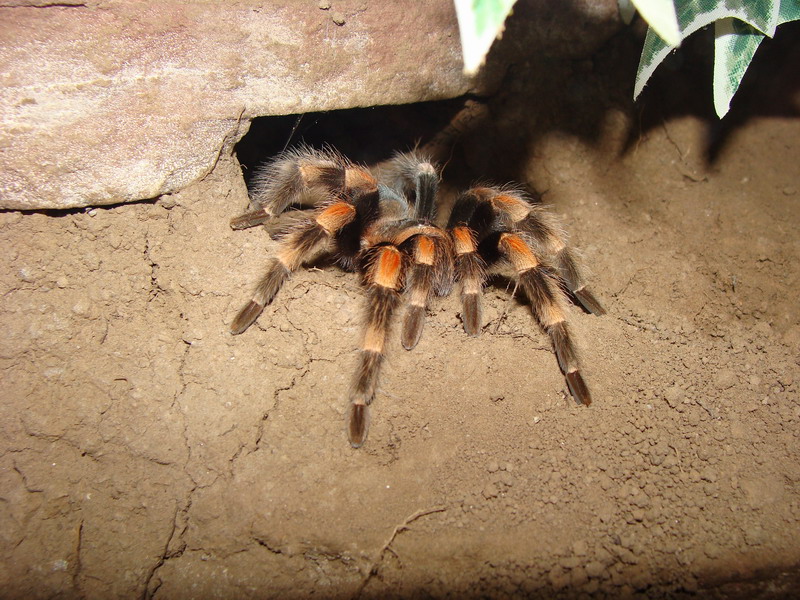 . Heute sitzt die Kleine schön brav links oben über der vorgegrabenen Wohnröhre in einem Versteck. Ich hab da insgesamt 3 Verstecke im Terrarium. Genug Verstecke für die Spinne ist mir immer wichtig.