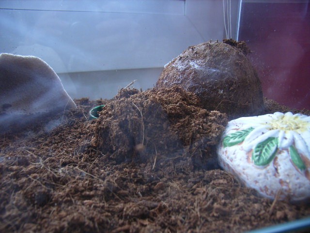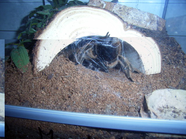 zur Vagans - seit unsere ihren Unterschlupf ausgebaut und um den Eingang viele Gäden gezogen hat ist sie nicht mehr annähernd so agro wie sie mal war. Zumindest hat sie schon länger nicht mehr die Gießkanne angegriffen oder anderweitig "Männchen" gemacht. Könnte allerdings auch daran liegen, daß in den nächsten Wochen eine Häutung ansteht, weil sie im Moment auch nichts futtern mag.