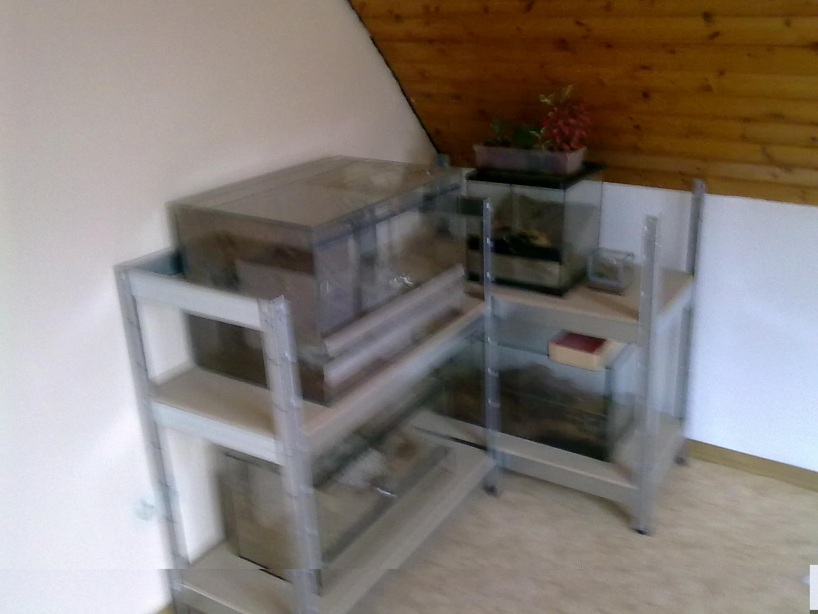 , oh falscher Ort Mein Stellmöglichkeit für Terrarien hab ich letztes Jahr auch geändert. Ich hab mir 5 Tische (Lack) von Ikea besorgt und da stehen die jetzt drauf. Da hat ein Tisch 5 Euro gekostet. War im grunde billig