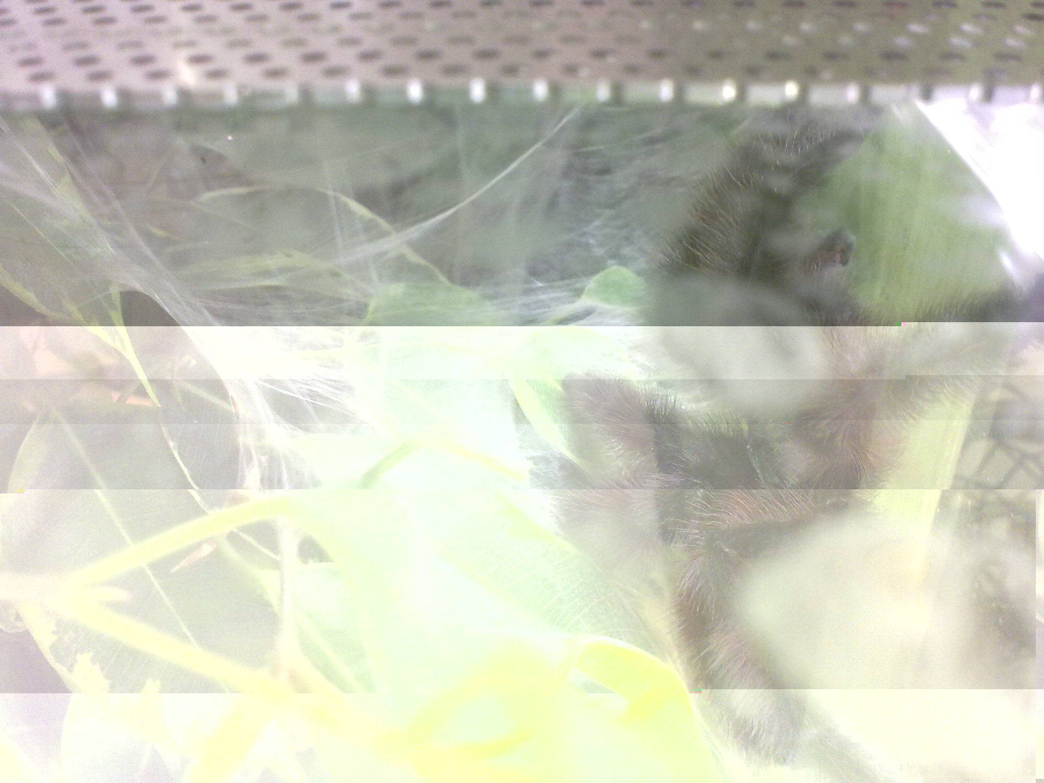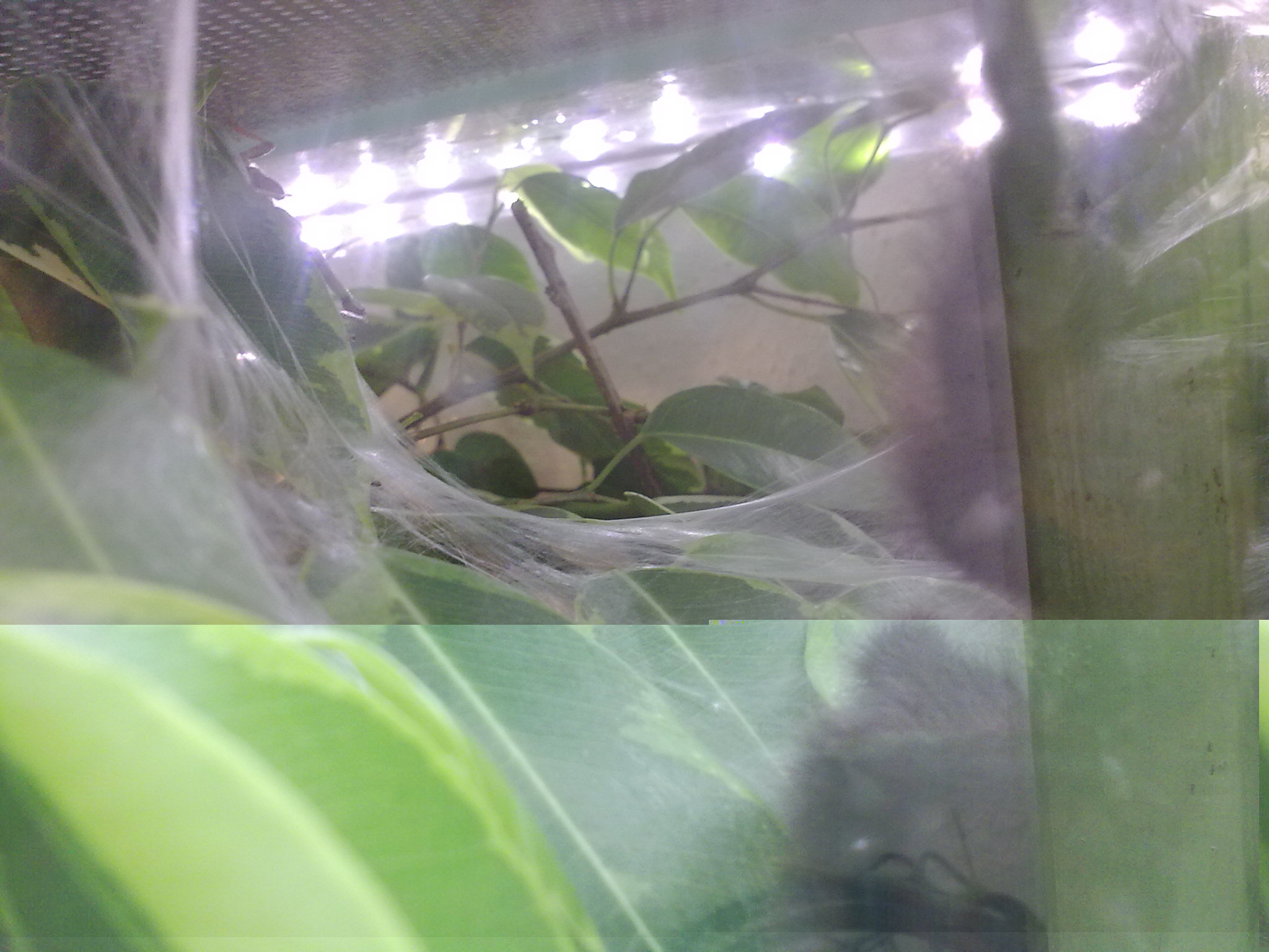 Der Kleine wird mir immer mehr zum Rätsel. Was er da gebastelt hat, ist wahrscheinlich doch nur eine Art Hängematte, in der er die meiste Zeit nur abhängt, er verläßt es nur für seine Sauftouren nach dem Sprühen. Futtern mag er nicht, und es deutet auch nichts darauf hin, dass er schon ein SN gepaut hat. Seine RH hatte er vor ca. 3 Wochen. Jemand ne Ahnung, wie lange ich mich noch gedulden muß?