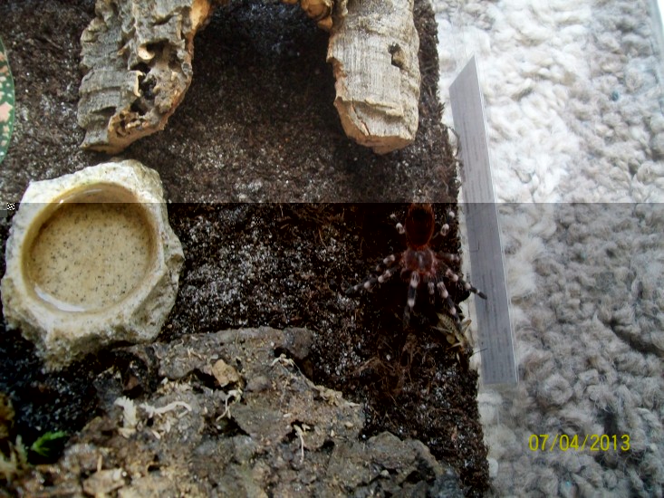 Naja,die Brachypelma wachsen ja in der Regel sehr langsam.Der Züchter sagte,sie hätte sich vor kurzem gehäutet und frisst gut...ja,habe ich gemerkt.
