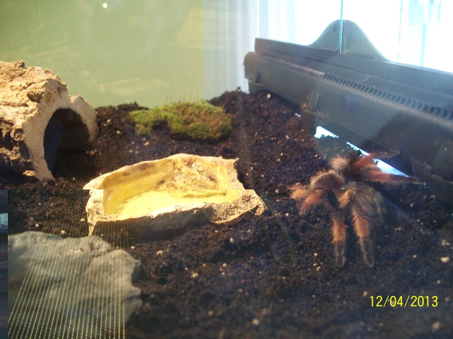 Sie hat sich gut eingelebt.Als ich vorhin nach Hause kam,saß sie auf der Korkhöhle.Sieht in natura besser aus,als auf den Bildern..aber das sagt jeder von seinen Spinnen. :mrgreen: