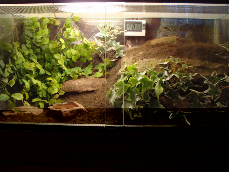 Hmm, der satz mit der Grillspinne kommt mir bekannt vor. Aber ich schrieb nicht das sie den ganzen Tag am umherwandern ist. Sie sitzt mal ruhig hier und mal ruhig da und dies einen ganzen tag lang. Und das eben durchs Terrarium verteilt. Wenn sie jetzt nur umherwandern würde müßte ich mir gedanken machen stimmt tut sie aber nicht. Ich hab genug Bodengrund im terrarium, Bepflanzt ist es auch was die Luftfeuchte anhebt. Versteckmöglichkeiten hat sie auch genug. Temperatur ist Tags 24 Grad und nachts 21 Grad. Zu heiß kann man auch nicht sagen. Ich meine im unteren Bereich zu liegen. Als ich sie eingesetzt habe war wohl der Boden noch etwas zu feucht so daß sie nur auf den Steinen einen platz zum verweilen gesucht hat. Feuchte Füße mögen Vs bekannterweise ja nicht. Ich zeig auch gern mal mein terrarium.