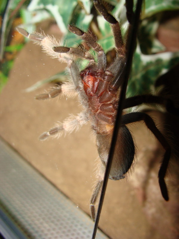Bei dunklen Glatzen fällt mir nur eines ein. Die Spinnen werden zuoft gestört. Weder B. smithi, G. rosea oder A. geniculata sind nervöse Arten. Keine meiner Smithis hat eine Glatze oder die A.geniculata hat auch keine Glatze. Die B. Boehmei hatte eine geb ich zu aber die Art ist sehr nervös und bombardiert sehr schnell. Ich mach ja so nicht viel an den Terrarien. Der Wassernapf wird aufgefüllt und erst wieder gefüllt wenn das Wasser verdunstet ist oder knapp davor ist. Das Feuchtterrarium meiner Geniculata befeuchte ich alle 4 Tage. Vogelspinnen mögen es gar nicht wenn zuviel im Terrarium hantiert wird. Die wollen eher ihre Ruhe.