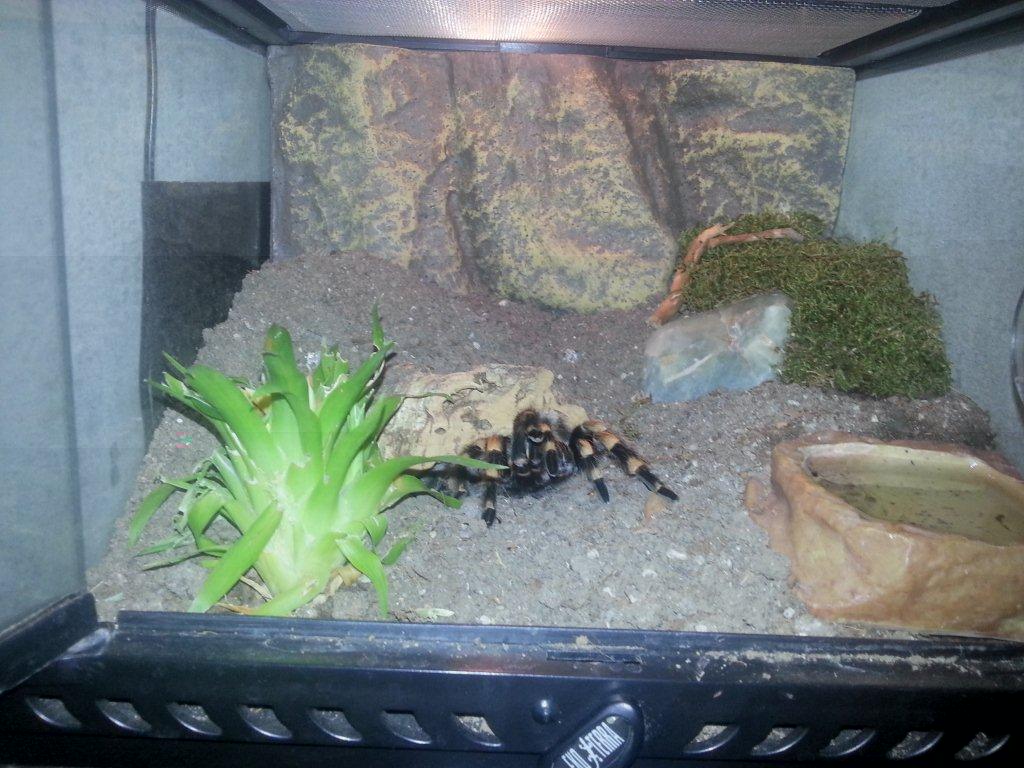 Die Pflanze ist schon länger drin hat sie nie gestört,ansonsten ist alles beim alten nutzt ihre Höhle sitzt tagsüber draußen und Nachts aktiv frisches Wasser,sitzt manchmal direkt auf dem Napf Luftfeuchte Tagsüber 55-60 nachts natürlich mehr der Boden ist Trocken Moos feucht,sitzt nicht an der Scheibe das mann vermutet es stört was,ist Nachts sehr aktiv wenn das Moos trocken ist schleppt sie es herum finde es dann meistens umgedreht woanders.