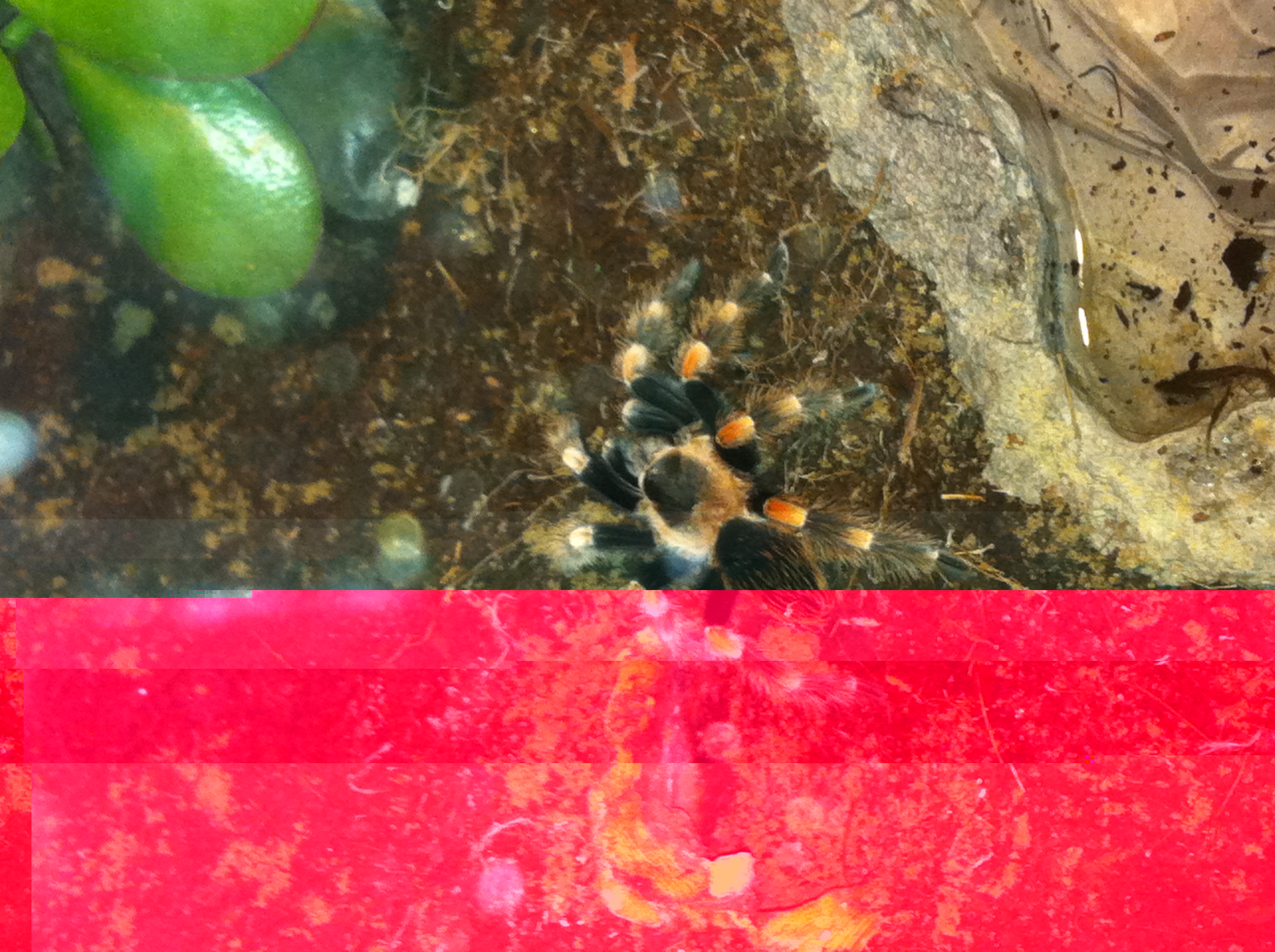nachdem meine :smithi jetzt genau 9 wochen in ihrer höhle verbracht hat, habe ich sie eben das erste mal wieder im freien gesehen. sie sieht deutlich verändert aus! jetzt hat sie seit 10 wochen nichts mehr gefressen, hoffe sie hält noch durch bis ich ihr morgen abend eine heuschrecke mitbringe...