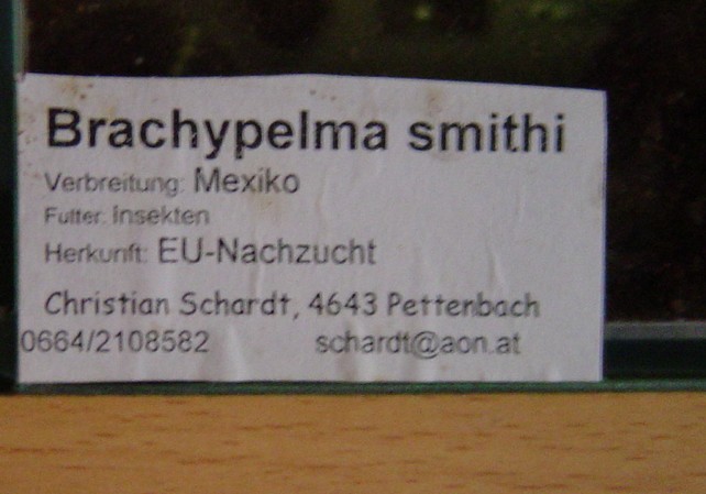 Innerhalb der EU gilt die Europäische Artenschutzverordnung (Anhang B), d. h. beim Kauf einer Brachypelma smithi erhält man vom Verkäufer einen Herkunftsnachweis mit genauen Angaben zur Art und Anzahl der Tiere sowie der vollständigen Anschrift des Verkäufers. Verweigert einem der Verkäufer das Ausstellen einer solchen Bescheinigung, sollte man vom Kauf des Tieres Abstand nehmen, denn man benötigt den Herkunftsnachweis für die Meldung bei der zuständigen Behörde.