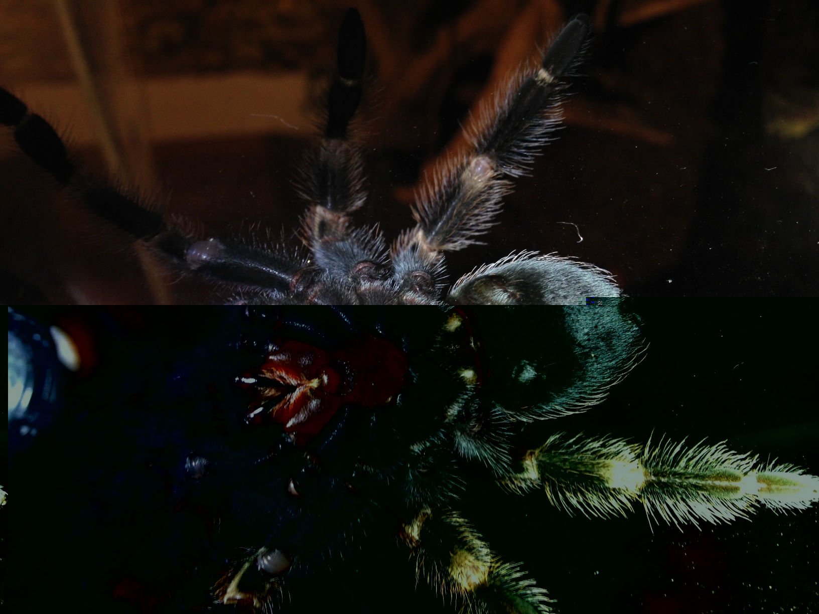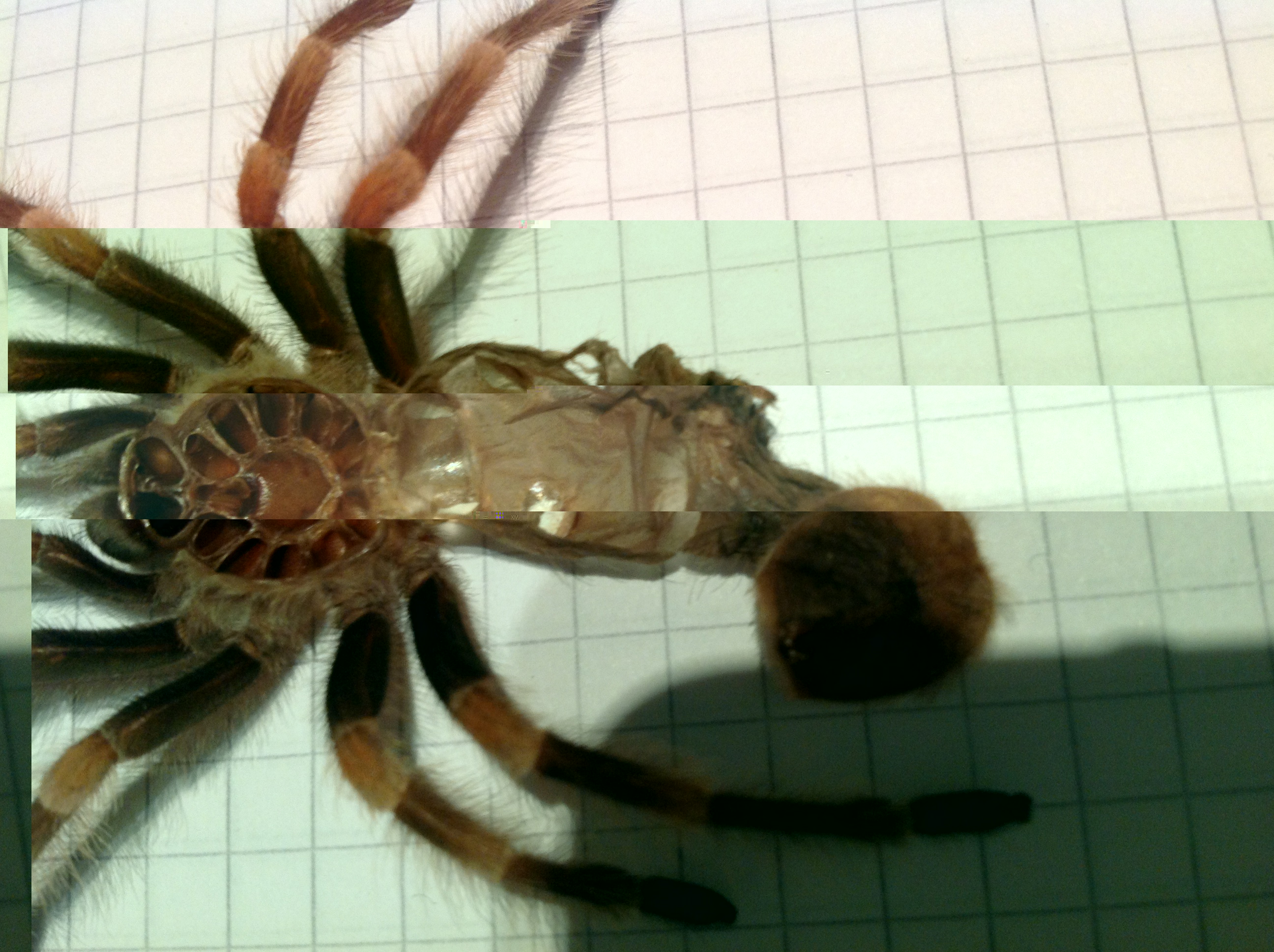 - eine häutung ist immer eine spannende sache, wenn man sie denn mitbekommt. wie esther schon sagt, ein wenig schärfe beim foto wäre hilfreich. schau mal die fotos an, die hier im forum auf der "home-seite" unter geschlechtsbestimmung abgebildet sind. dort kannst du sehen worauf es beim fotografieren ankommt.was azrael schreibt ist richtig. - viele neulinge wissen nicht das der chitinpanzer nach einer häutung noch tagelang weich ist. deine spinne wächst auch nun in diesem zeitraum. deshalb empfiehlt sich sich das tier ca. 10 - 14 tage so weit wie möglich in ruhe zu lassen. außer bei leerer wasserschale, in einem günstigen moment in dem man das tier gerade nicht stört, wasser aufzufüllen bzw. überlaufen zu lassen. sonst macht man möglichst gar nix. - bei fluchtreaktionen der spinne könnten sonst verformungen insbesondere der beine die folge sein. ganz wichtig, im falle das du es noch nicht weißt, zwei wochen kein futter anbieten!!! auch die Chelizeren sind noch nicht ausgehärtet!
