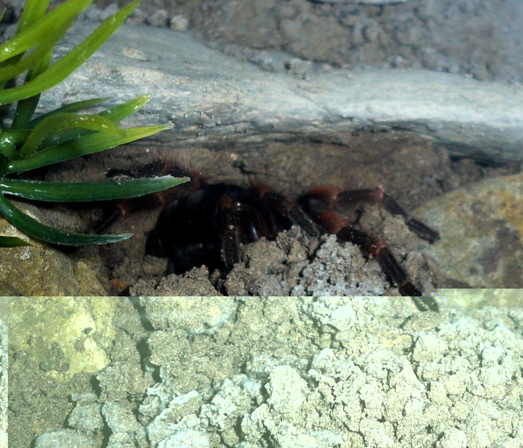 im Moment bewohnt sie noch ihr "Kinderzimmer" (Glassterrarium 15x15x20), das sollte noch 2-3 Häutungen reichen. Als endgültige Bleibe ist dann ein Terrarium mit 30x30x40 geplant. Das sollte reichen, denn A. versicolor zählt ja nicht zu den ausgesprochen großen "Brummern".