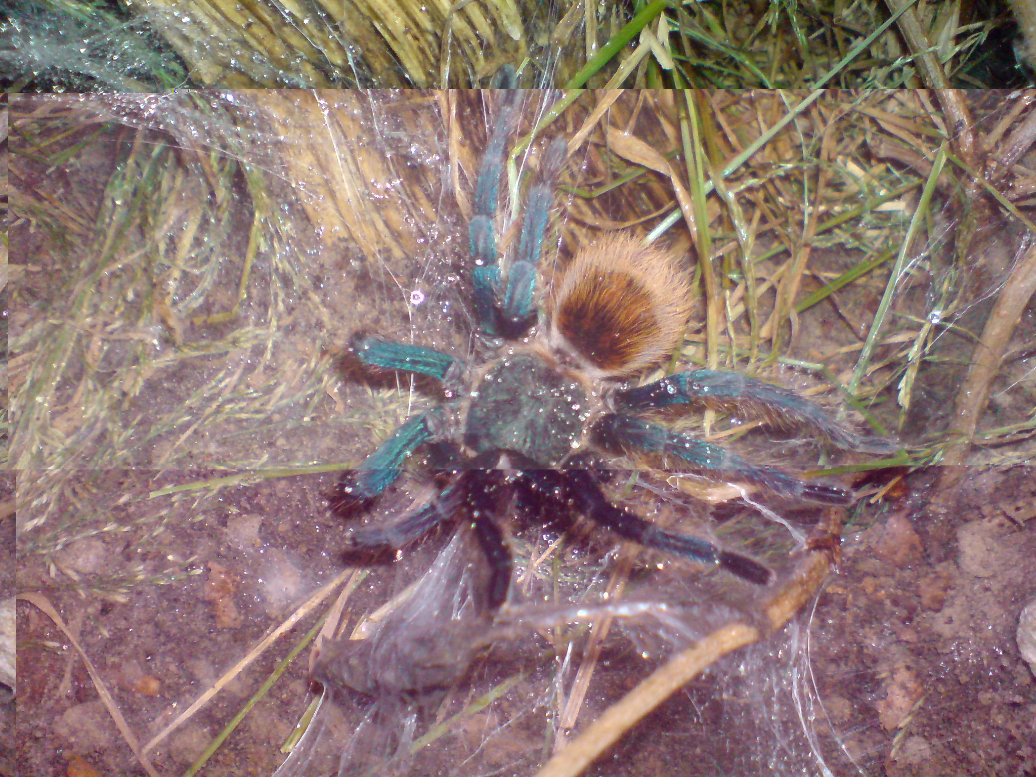 Hey- ich habs gestern nacht nochmal getestet und mir überlegt ob die spinne vllt wegen der feuchtigkeit sich zur hand hinwand- und siehe da nachdem ich ihr neues gespinnst mit wasser eingesprüht hatte, hat sie so viel getrunken, wie ich es noch nie bei einer spinne gesehen hatte!!! sie muss wohl mächtig durst gehabt haben... hier ein paar bilder, wie sie ihr gespinnst "ablutscht"- sie hat ca. eine halbe std gesoffen!!